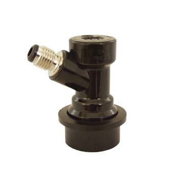 Black, beverage out quick disconnect with male flare fitting.