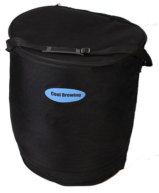 Control your fermentation temperatures with Cool Brewing's simple, yet innovative, insulated fermentation bag. This is the 2nd generation Cool Brew bag, which has made cold fermentations even easier! Fermenting your homebrew at the right temperature is one of the critical factors in making good beer. Let the temperature get too warm, and your beer will taste 'rough' as the soft malt and vibrant hop flavors dissapear! Typically an advanced homebrewer would want to get a spare refrigerator or even a MoreBeer! Cooled Conical to control fermentation temperatures, both those options either take up a lot of space or can cost a fair amount of money. The Cool Brewing Bag allows the apartment brewer, those who have space constraints, or the brewer on a budget a great option to control fermentation temperature and make great beer.,Cool Brewing's Fermentation Cooler is designed specifically to accommodate standard 6.5, 6 or 5 gallon fermenter. You freeze a 2 liter soda bottle with water, or similar, and place in the fermentation bag with your fermenting carboy. Also works great with the Ss BrewTech Brew Buckets!,The typical desired ale fermentation range is on average around 62-72° F. For a typical 5 gallon batch (1) frozen 2-liter bottle should lower wort temperature around 5 degrees, while using (2) 2-liter bottles will lower wort temperature around 11 degrees for 24-36 hours. Of course your exact results might vary but you can adjust the amount of ice you use as you go. The manufacturer has found they can cool the wort temperature up to around a 30-35° drop from ambient room temperature. On the flipside, add a Fermwrap and temperature controller to the setup, and you've got a heated fermentation temperature accurate to within 1° F!,The Cool Brewing Fermentation Cooler is sealed, insulated and 100% waterproof so it will efficiently and neatly keep your temperatures in check. When you’re done, the Cool Brewing Fermentation Cooler easily folds up for storage until the next brew day!, Cool Brew Features:,,,Up to twice as efficient and cleaner then homemade swamp coolers,,,Much less expensive than custom kegorator or keezer set up's that cost $100's of dollars.,,,Cool Brewing Cooler will work with multiple sized fermenters.,,,100% waterproof so will not leave condensation.,,,It folds up for easy storage when not in use or travel.,,,Will work great in condos and warm climates where you need a swamp cooler even for Ale’s!,,,Contains the mess of any fermentation blowouts,,,Inner dimensions: 20.5"D x 25.5"H