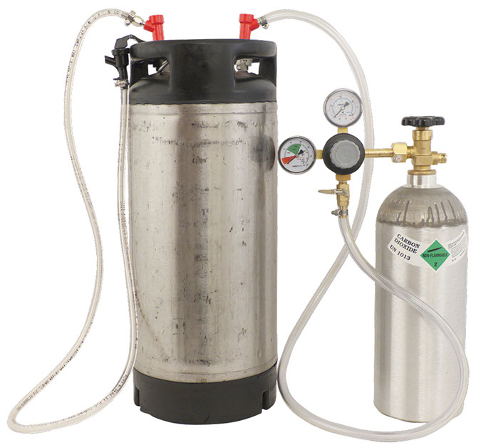 A complete setup for dispensing your homebrew like the pros. There are several advantages to a kegging system. The number one reason is that you no longer have to clean bottles. You will also enjoy drawing your own beer from a keg. Your friends won't mind either! This system is designed to include absolutely everything you need to dispense your homebrew on draft. Only the best equipment... dual gauge regulator, so you can tell the pressure in the keg, as well as what is left in the tank. Includes an Aluminum CO2 tank that will never rust. 5' of 3/16" ID beer line, so your beer drops to the correct pressure and does not excessively foam in the glass.,,Included In Basic Homebrew Draft System:,,• 5 gallon rebuilt Pin Lock Cornelius keg with new gaskets,• Beer line assembly with hand held style faucet,• New aluminum 5 lb CO2 tank,• Gas line assembly - Pin Lock,• Dual gauge regulator with check valve,The CO2 tanks are shipped empty. You can have them filled at a welding supply shop or see your Yellow Pages under Gas- Industrial, Medical.,,Download the KEG400G instructions here.,,Note: This homebrew draft system comes with PIN LOCK fittings.