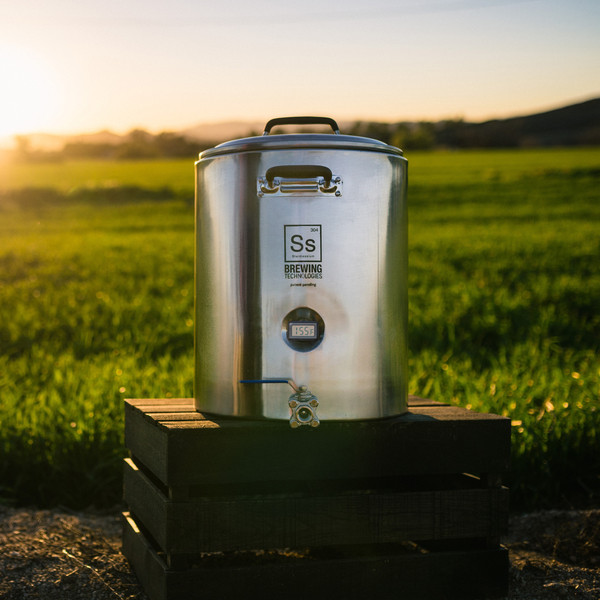 An insulated, stainless steel Mashtun for hombrewing that will keep your mash at the temperature you set. Retains an amazing amount of heat since it is double walled with a layer of insulation between the two stainless walls. Unlike insulated plastic cooler the InfuSsion Mashtun is made of food safe stainless steel so you have no worries about the effect of heat on plastic. With cool features like an integrated center drain port, gasketed false bottom setup, etched volume markers, stainless hardware, and a digital thermometer, this is the ultimate mashtun! ,When Ss Brewtech tested against similar sized plastic cooler mash tuns, the Infussion dropped 5° F less over the course of a 60 minute mash. The center draining conical bottom vessel silicon gasketed false bottom minimizes the amount of water under the screen, what many brewers refer to as dead space, and allows for great efficiency. One of our favorite features is the simplest...the internal volume markers rid you forever of having to use a ruler to calculate the right amount of mash water. ,This is a great addition to any brewery, and with the additional upgrade kits in the pipeline like a Sparging System, Heating & Temp Control System the InfuSsion Mashtun will become of your favorite pieces of equipment for years to come! ,Features:,,,10 gallon capacity,,,Internal Volume Markers,,,Foam insulated Dual Wall 304 SS with excellent heat retention!,,,Thermowell included,,,Precision LCD thermometer,,,Foam insulated lid reduces heat loss,,,False Bottom with removable Silicone Gasket,,,Silicone handles for safety also act as a lid hanger,,,Temperature proof - never worry about leaching chemicals from plastic,,,Wall thickness is nearly an inch of dual layered steel and insulation.,,,PLEASE NOTE: These cannot be used in direct-fire applications. Do not use over a burner!,Dimensions: 20” H x 16” W