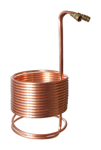 If you frequently brew large beer batches and want to speed up your chilling process, there’s no better immersion chiller than the SuperChiller from MoreBeer! This incredibly efficient chiller is designed to use with any of our 15 and 26 gallon kettles, but it can really be used with any kettle large enough to accommodate a chiller of this size.,This SuperChiller measures 50-feet long and is made up of ½ inch copper tubing, which is some of the highest quality tubing and cools much faster than other materials. It features connection fittings for standard garden hoses on either end, so you can hook it up to a water supply just about anywhere in or outside of your home. Tightly wound coils stack 12 inches in diameter, and there is even a 23 ½-inch bend at the top to go over the lip of your brew kettle. ,,The measurements are: Approx. 12" diameter, 11 1/2" to the top coil, 23 1/2" to the bend to go over the lip of the kettle.